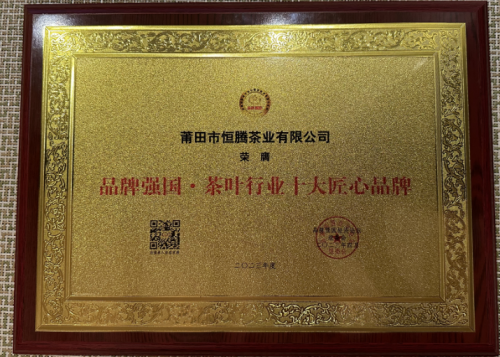 2023品牌强国经济论坛主办方,根据《2023中国品牌经济创新发展舆情监测成果报告》,推举了一批在“科技创新、品牌创建、专精特新、新消费、新业态以及在产业链、供应链和创新链融合提质”取得突出成绩的优秀创新代表,以榜样的力量助推企业深化供给侧结构性改革,评选新的一批创新优秀品牌,让大家看到中国品牌的创新发展实力,刷新国际市场对中国品牌的认知。 莆田市恒腾茶业有限公司 获评“品牌强国·创新力企业100强”和 “品牌强国·茶叶行业十大匠心品牌”两大奖项。恒腾茗茶成立于1998年,隶属于福建意蕴天成茶业有限公司,公司旗下茶业生产基地,位于福建安溪县西坪铁观音生产基地,另一处位于福建南平市武夷山正岩产区。 恒腾茗茶,致力于为每个人喝上一口好茶而努力。主营有手工茶、岩茶、红茶、铁观音、白茶、普洱茶等。